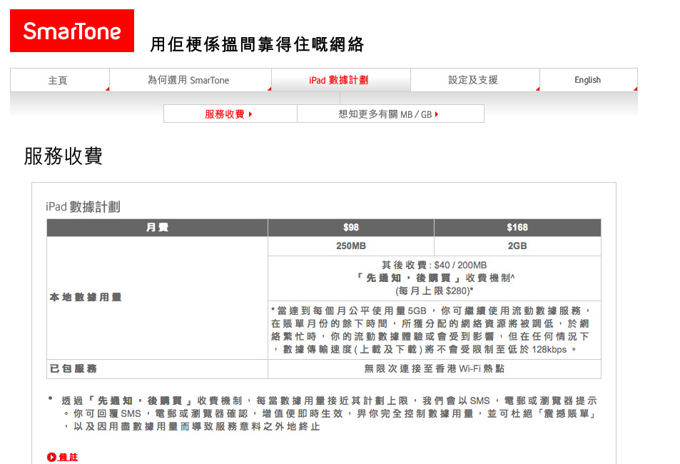 若果你係 SmarTone 話音數據用戶,收費會平好多 $128 就 5GB 無限。所以,若果你只係想用 SmarTone 的 iPad 計劃,其實唔化算的。