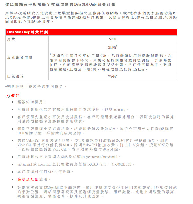 此外,SmarTone 特別禮待 iPad 用家。因為,他們給予其他 Tablet 用家,只需 $208 就 5GB 無限,同樣寫住支援 42Mbps 最高速度,亦包無限次 Y5zone 的 WiFi 上網。不過,這需要簽約 18 個月。