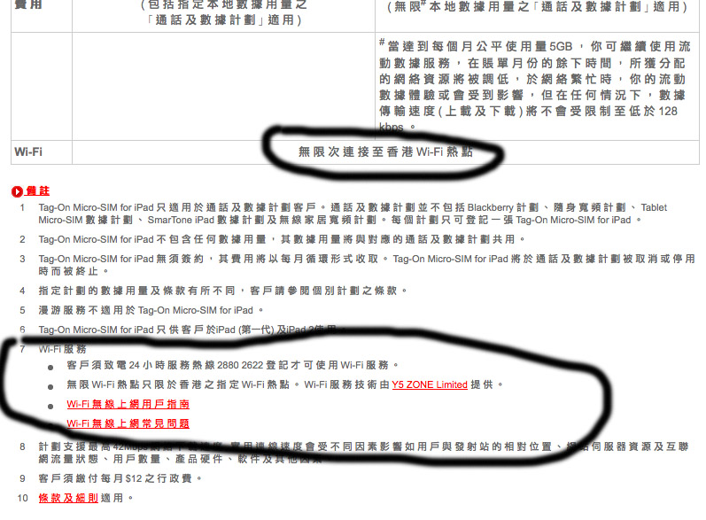 此外,條款用字亦不洽當,說無限次連接至香港 WiFi 熱點,若果你沒有按備註,跟本不知道他們的合作單位為 Y5 Zone ,而不是最近賣大廣告的 PCCW。